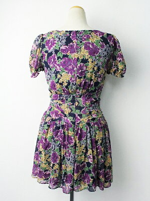 Lois CRAYON ロイスクレヨン フラワー プリント シフォン ワンピース M/花柄 ネイビー パープル【2400010624247】【中古】*高価買取中* nsg